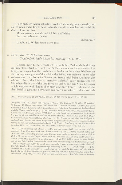 Anfang April bis 15. April 1801 · Place of Dispatch: Gnadenfrei · Place of Destination: Berlin -