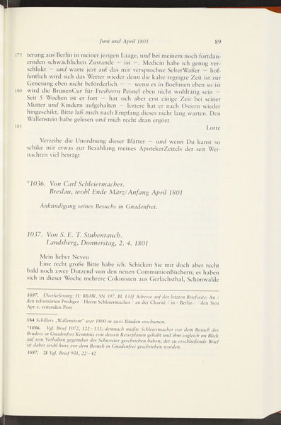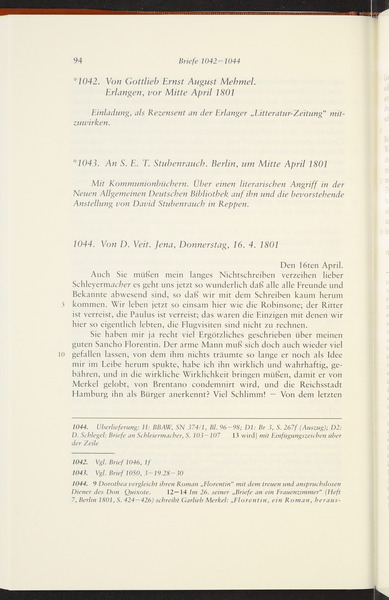 vor Mitte April 1801 · Place of Dispatch: Jena · Place of Destination: Berlin -