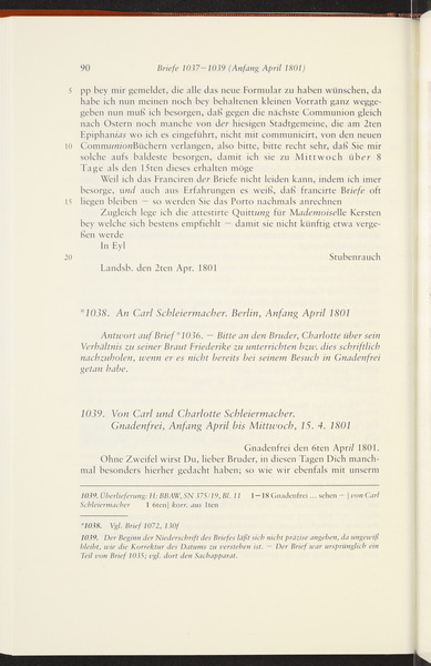 Anfang April 1801 · Place of Dispatch: Berlin · Place of Destination: Breslau -