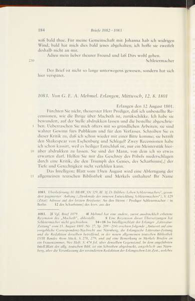 Mittwoch, 12. August 1801 · Place of Dispatch: Erlangen · Place of Destination: Berlin -