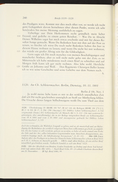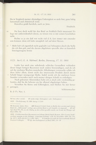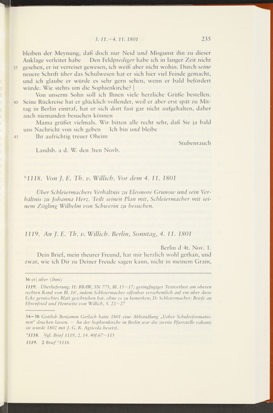 Ende November 1801 · Place of Dispatch: Jena · Place of Destination: Berlin -