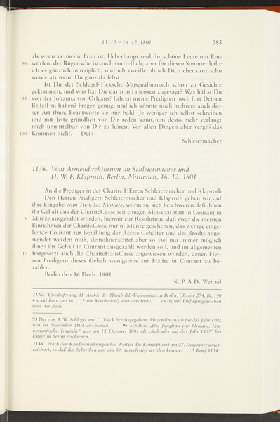 Mitte/Ende Dezember 1801 · Place of Dispatch: Jena · Place of Destination: Berlin -