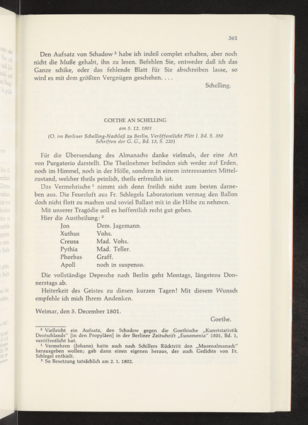 Anfang Dezember 1801 · Place of Dispatch: Jena · Place of Destination: Berlin -