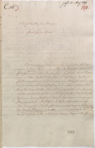 Mai 1798 · Place of Dispatch: Jena · Place of Destination: Weimar -