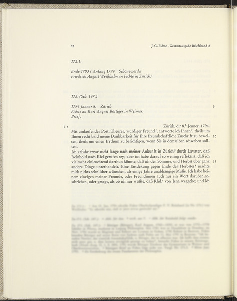 Mittwoch, 8. Januar 1794 · Place of Dispatch: Zürich · Place of Destination: Weimar -