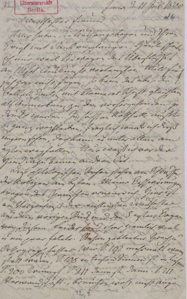 Freitag, 11. Juli 1800 · Place of Dispatch: Jena · Place of Destination: Berlin -
