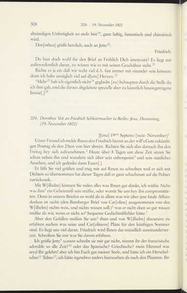Friedrich von Schlegel, Dorothea von Schlegel to August Wilhelm von Schlegel