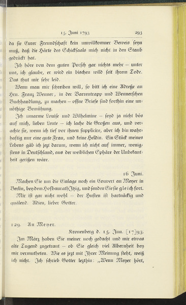 Samstag, 15. Juni 1793 · Place of Dispatch: Kronberg im Taunus · Place of Destination: Berlin -