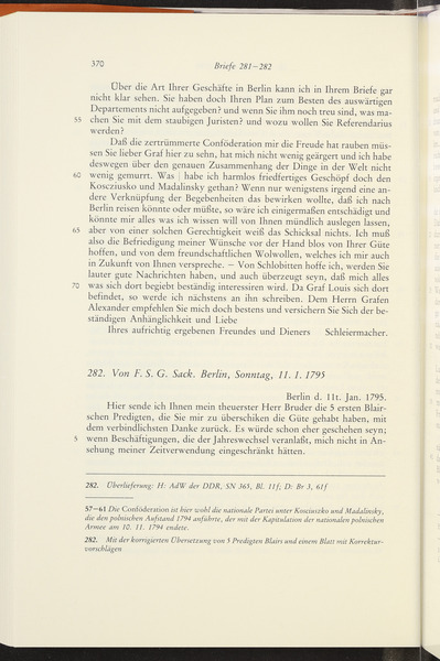 Friedrich Samuel Gottfried Sack to Friedrich Schleiermacher