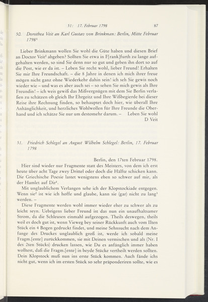 Mitte Februar 1798 · Place of Dispatch: Berlin · Place of Destination: Jena -