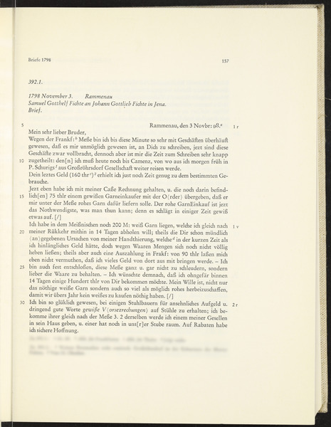 Samstag, 3. November 1798 · Place of Dispatch: Rammenau · Place of Destination: Jena