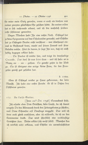 Samstag, 22. Oktober 1796 · Place of Dispatch: Jena · Place of Destination: Gotha -