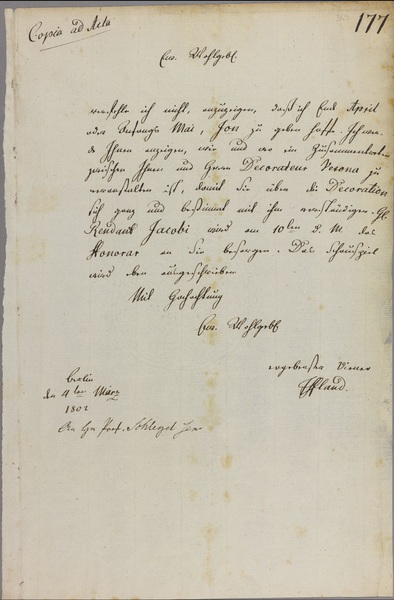 August Wilhelm Iffland to August Wilhelm von Schlegel
