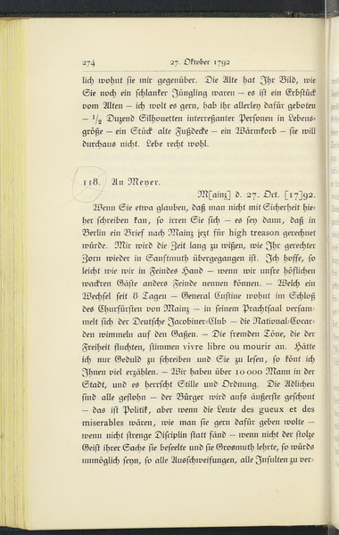 Samstag, 27. Oktober 1792 · Place of Dispatch: Mainz · Place of Destination: Berlin -