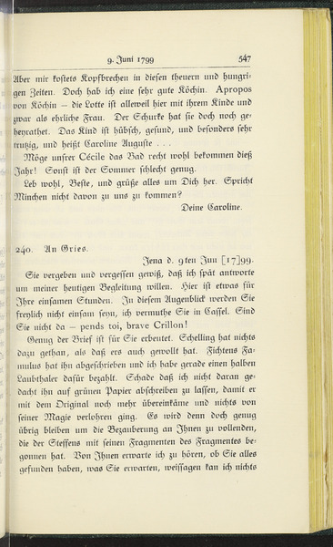Sonntag, 9. Juni 1799 · Place of Dispatch: Jena · Place of Destination: Jena -