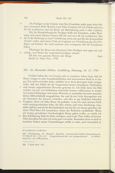 Dienstag, 24. November 1795 · Place of Dispatch: Landsberg (Warthe) · Place of Destination: Berlin