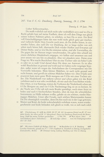 Friedrich Carl Gottlieb von Duisburg, Anna Barbara Duisburg to Friedrich Schleiermacher