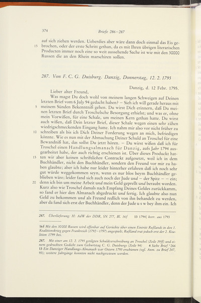 Donnerstag, 12. Februar 1795 · Place of Dispatch: Danzig (Gdańsk) · Place of Destination: Landsberg (Warthe) -