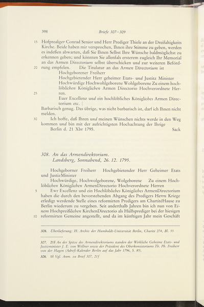Samstag, 12. Dezember 1795 · Place of Dispatch: Berlin · Place of Destination: Landsberg (Warthe) -