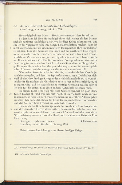 Friedrich Schleiermacher to Carl Emanuel Oehlschläger