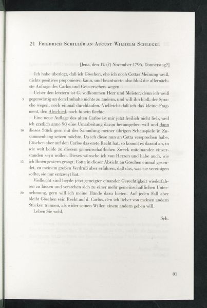 Friedrich Schiller to August Wilhelm von Schlegel