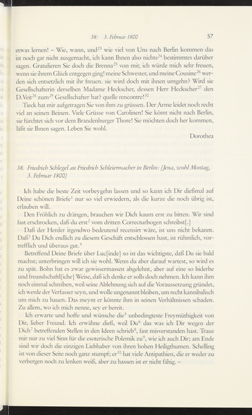 Friedrich von Schlegel, Dorothea von Schlegel to Friedrich Schleiermacher