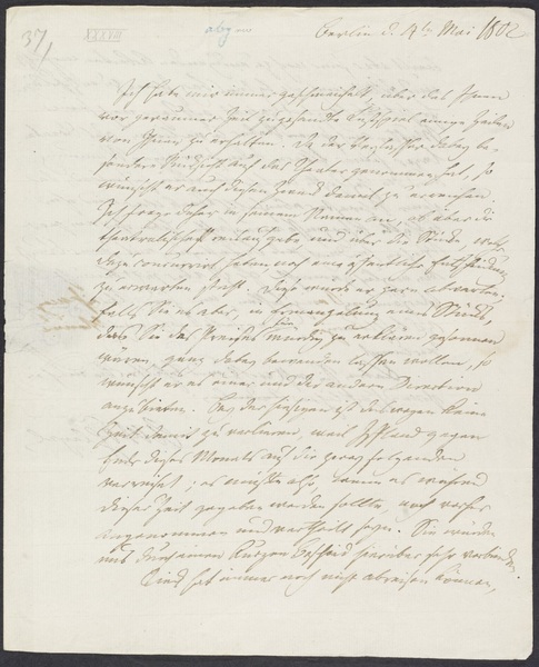 Dienstag, 4. Mai 1802 · Place of Dispatch: Berlin · Place of Destination: Weimar -