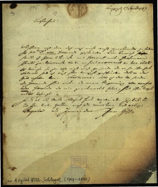 Mittwoch, 27. September 1797 · Place of Dispatch: Leipzig · Place of Destination: Jena -