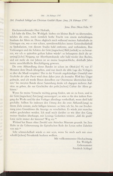 Friedrich von Schlegel to Christian Gottlob Heyne