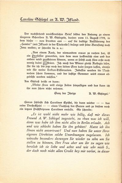 August Wilhelm von Schlegel, Caroline von Schelling to August Wilhelm Iffland