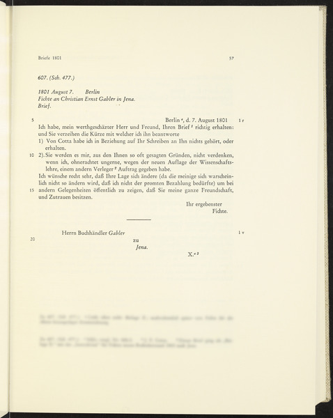 Freitag, 7. August 1801 · Place of Dispatch: Berlin · Place of Destination: Jena -