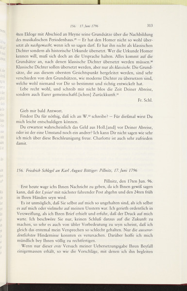 Freitag, 17. Juni 1796 · Place of Dispatch: Pillnitz · Place of Destination: Weimar -