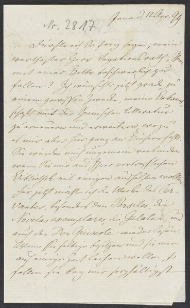 Freitag, 12. April 1799 · Place of Dispatch: Jena · Place of Destination: Weimar -