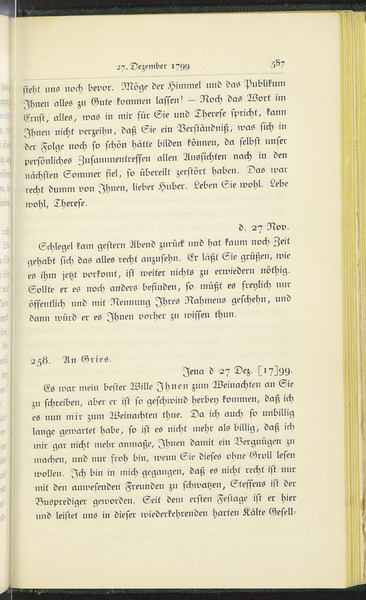 Freitag, 27. Dezember 1799 · Place of Dispatch: Jena · Place of Destination: Göttingen