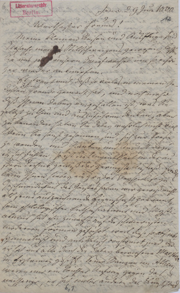 Montag, 9. Juni 1800 · Place of Dispatch: Jena · Place of Destination: Berlin -