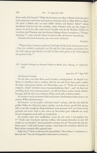 Montag, 21. September 1801 · Place of Dispatch: Jena · Place of Destination: Berlin