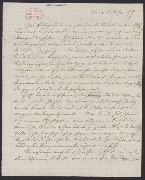 Freitag, 18. Januar 1799 · Place of Dispatch: Jena · Place of Destination: Berlin -