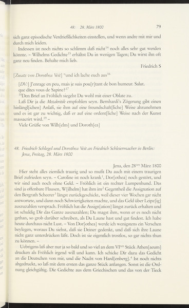 Friedrich von Schlegel, Dorothea von Schlegel to Friedrich Schleiermacher