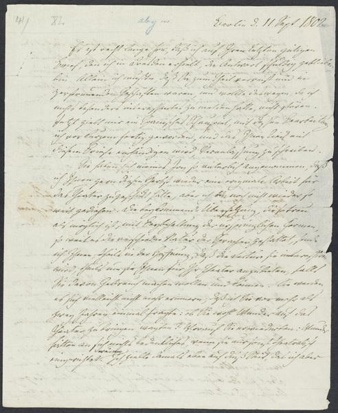 Samstag, 11. September 1802 · Place of Dispatch: Berlin · Place of Destination: Weimar -