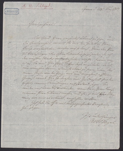 August Wilhelm von Schlegel to Sophie Bernhardi
