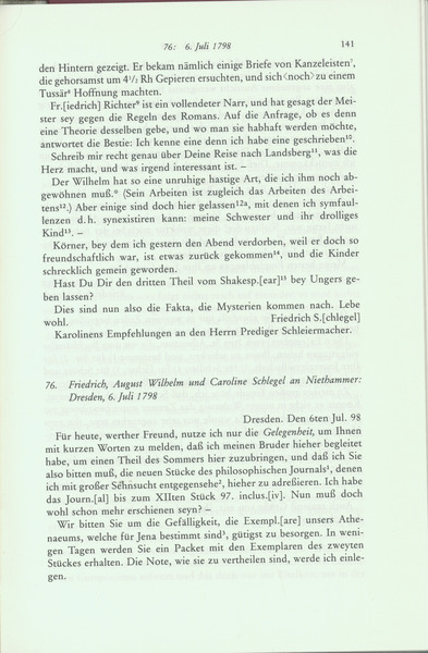 August Wilhelm von Schlegel, Friedrich von Schlegel, Caroline von Schelling to Friedrich Immanuel Niethammer