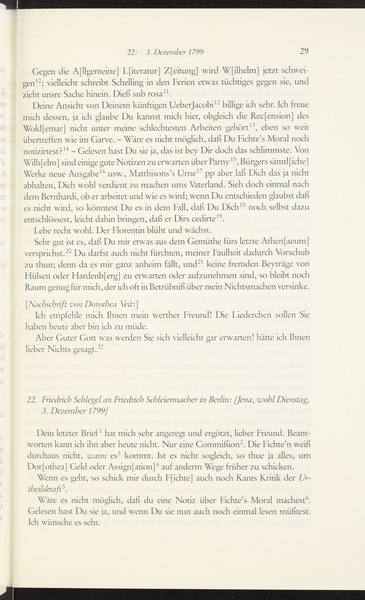 Freitag, 29. November 1799 · Place of Dispatch: Jena · Place of Destination: Berlin -