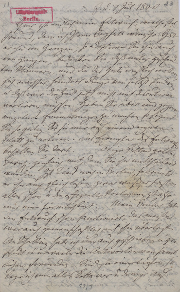 Montag, 7. Juli 1800 · Place of Dispatch: Jena · Place of Destination: Berlin -